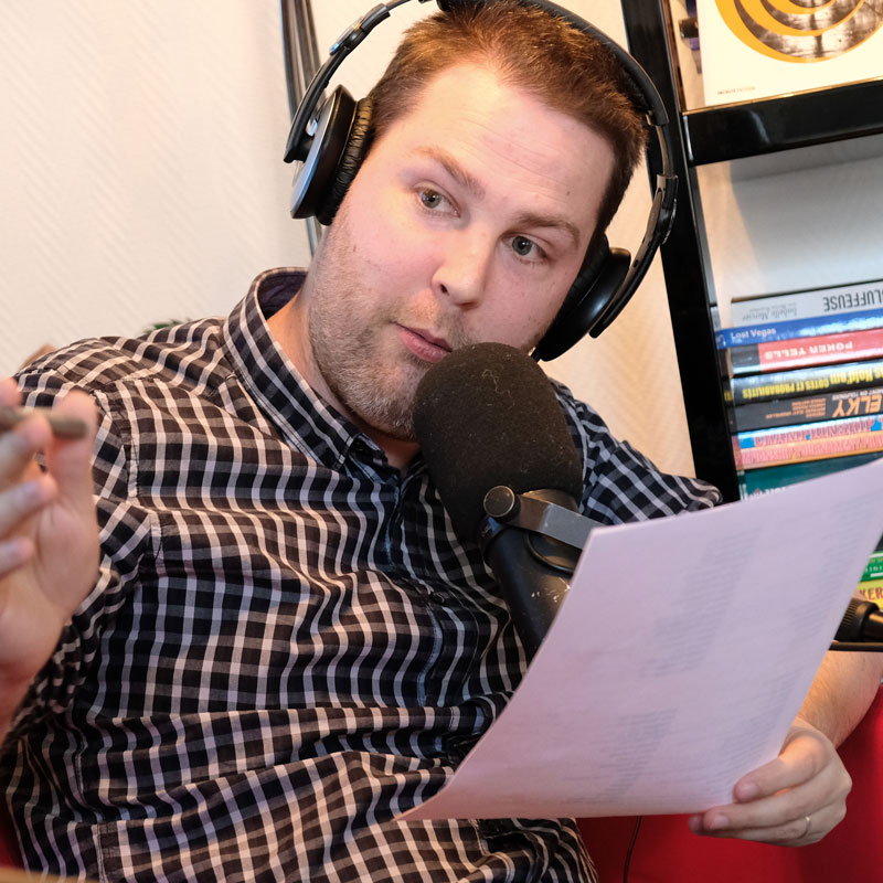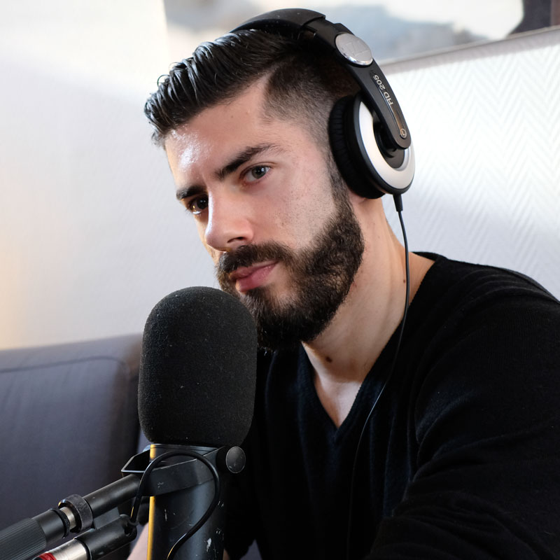 Bonne humeur, coiffure impeccable, manucuré de la barbe aux doigts de pieds, voilà le Delahousse du podcast.